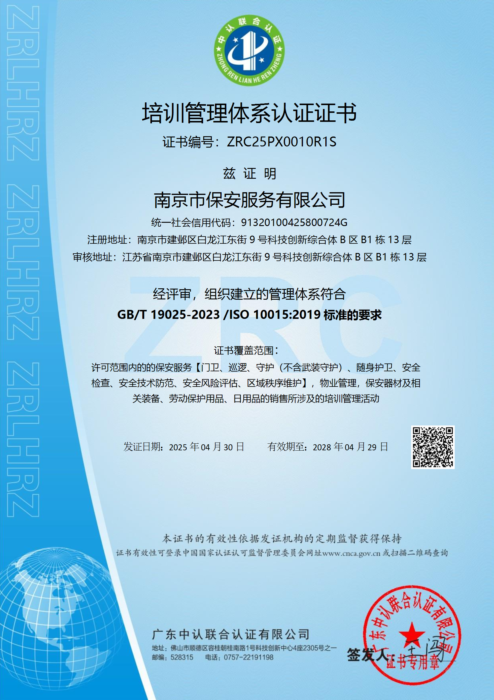 Established in April 1987, Nanjing Security Service Co., Ltd. is a large state-owned security enterprise with a long history of security operation and rich security experience. Now it is a managing director of both? China Security Association and Jiangsu?Security Association, vice president of? Nanjing Security Association, one of the top class security service companies in Jiangsu Province.